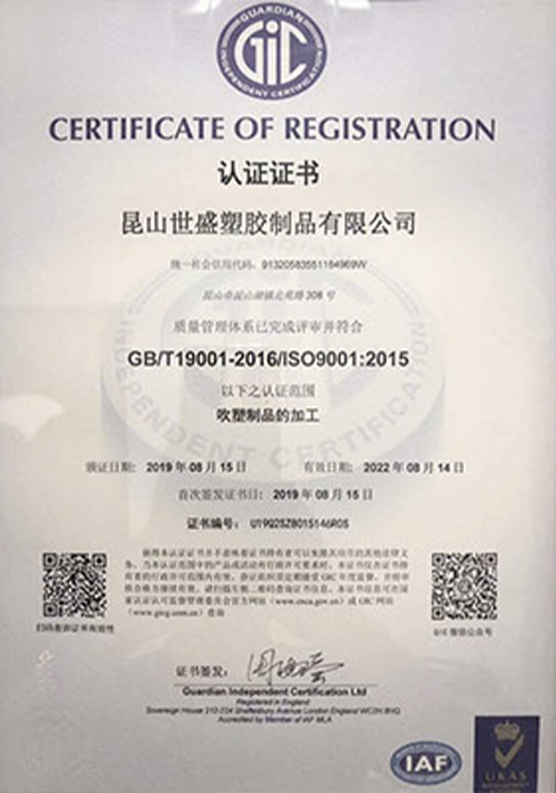推行ISO质量管理体系,吹塑加工严格依据ISO9001国际标准标准化流程